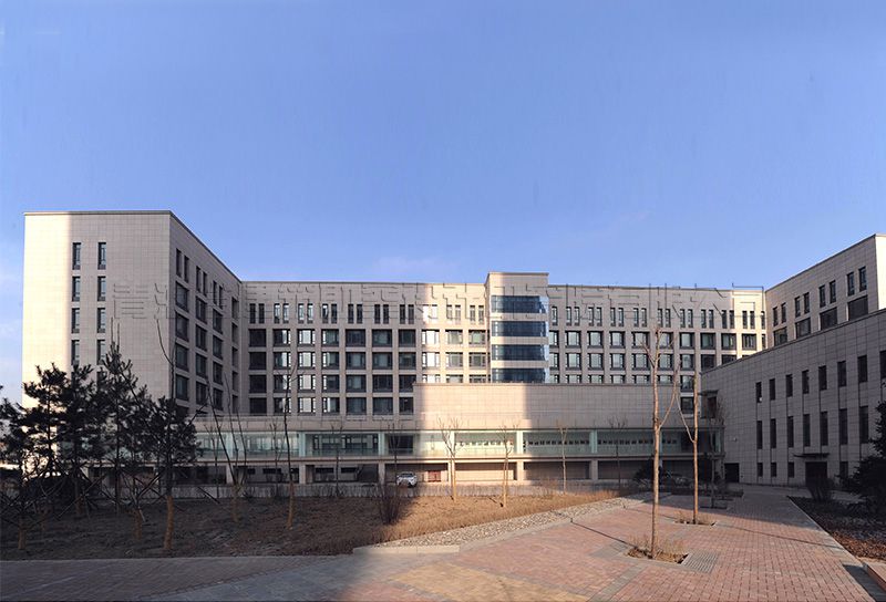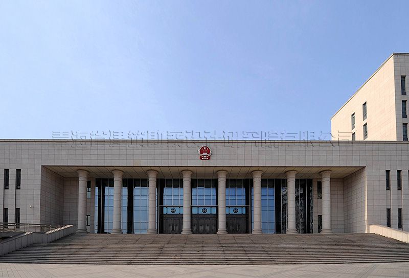 青海省高級(jí)人民法院審判辦公樓工程位于西寧市城北區(qū)柴達(dá)木路與西站二巷道路交叉口西南角,總用地面積60.27畝,用地內(nèi)布置審判辦公樓、法官培訓(xùn)中心、干警高層住宅樓及配套鍋爐房等項(xiàng)目。審判辦公樓總建筑面積32671.00m2,地上層數(shù)為8層,地下1層,建筑高度31.80m。主體建筑分為辦公用房和審判用房?jī)蓚€(gè)部分。建筑一層及局部地下室設(shè)汽車庫(kù)、設(shè)備用房、檔案室和羈押用房。辦公部分二至八層為法院行政公共用房,其中二層設(shè)門廳、多功能會(huì)議廳,頂層設(shè)大會(huì)議室、視頻會(huì)議室、閱覽室、健身房等,其他樓層設(shè)辦公及部門會(huì)議室。辦公用房設(shè)置滿足規(guī)范《黨政機(jī)關(guān)辦公用房建設(shè)標(biāo)準(zhǔn)》的要求。依據(jù)《人民法院法庭建設(shè)標(biāo)準(zhǔn)》審判用房布置在辦公樓東南側(cè),相對(duì)獨(dú)立,其中設(shè)大法庭1個(gè),中法庭2個(gè),小法庭8個(gè),另設(shè)立案大廳、信訪大廳、候?qū)彺髲d及法官和參與庭審活動(dòng)的律師、證人、公訴人等人員的配套服務(wù)用房。審判法庭布置重點(diǎn)解決法庭內(nèi)各種流線的要求,即法官通道、羈押通道、旁聽觀眾通道,三者獨(dú)立又互相聯(lián)系的關(guān)系。
