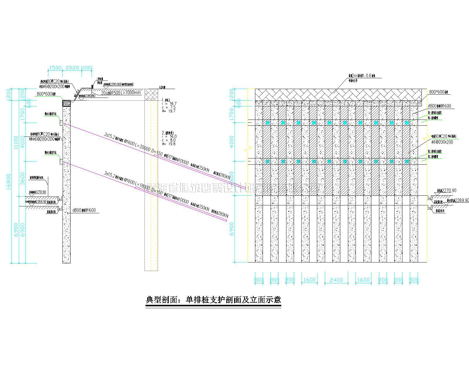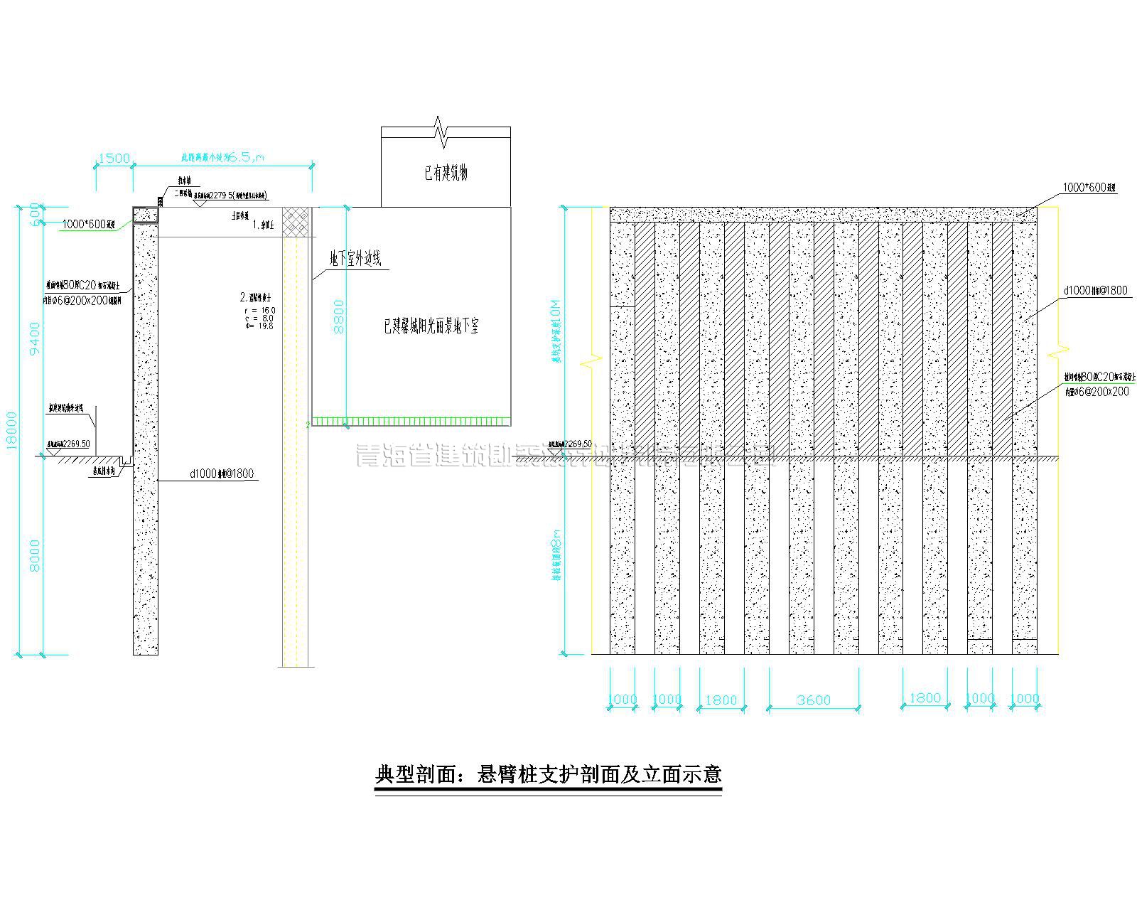 根據(jù)現(xiàn)場地質(zhì)條件及基坑周邊環(huán)境,依據(jù)《建筑基坑支護(hù)技術(shù)規(guī)程》(JGJ120-2012)及《濕陷性黃土地區(qū)建筑基坑工程安全技術(shù)規(guī)程》(JGJ167-2009)規(guī)定確定;基坑北側(cè)及西側(cè)基坑深度為8.6-10.0m,支護(hù)結(jié)構(gòu)安全等級為為二級;其余兩側(cè)(東側(cè)及南側(cè))開挖深度在9m-12.1m之間,支護(hù)結(jié)構(gòu)安全等級為一級。此次支護(hù)基坑側(cè)壁安全等級為一級。本著安全穩(wěn)定、經(jīng)濟(jì)合理的原則,本次基坑支護(hù)設(shè)計(jì)采用排樁+預(yù)應(yīng)力及懸臂樁等綜合性,分段性的支護(hù)支護(hù)方式進(jìn)行?;又ёo(hù)設(shè)計(jì)工作于2018年完成,并于次年通過青海省建設(shè)工程勘察設(shè)計(jì)咨詢中心有限公司審查合格。