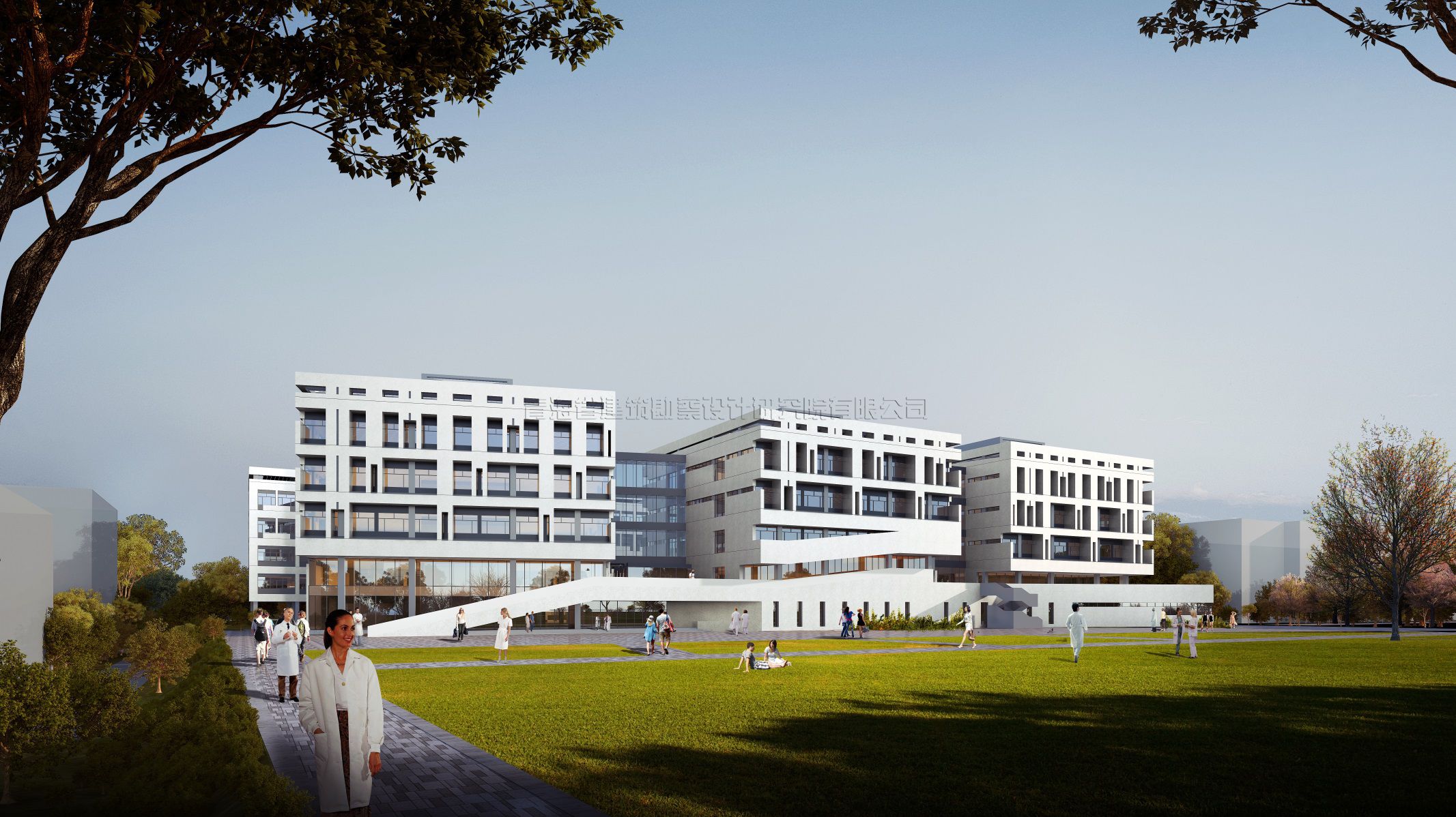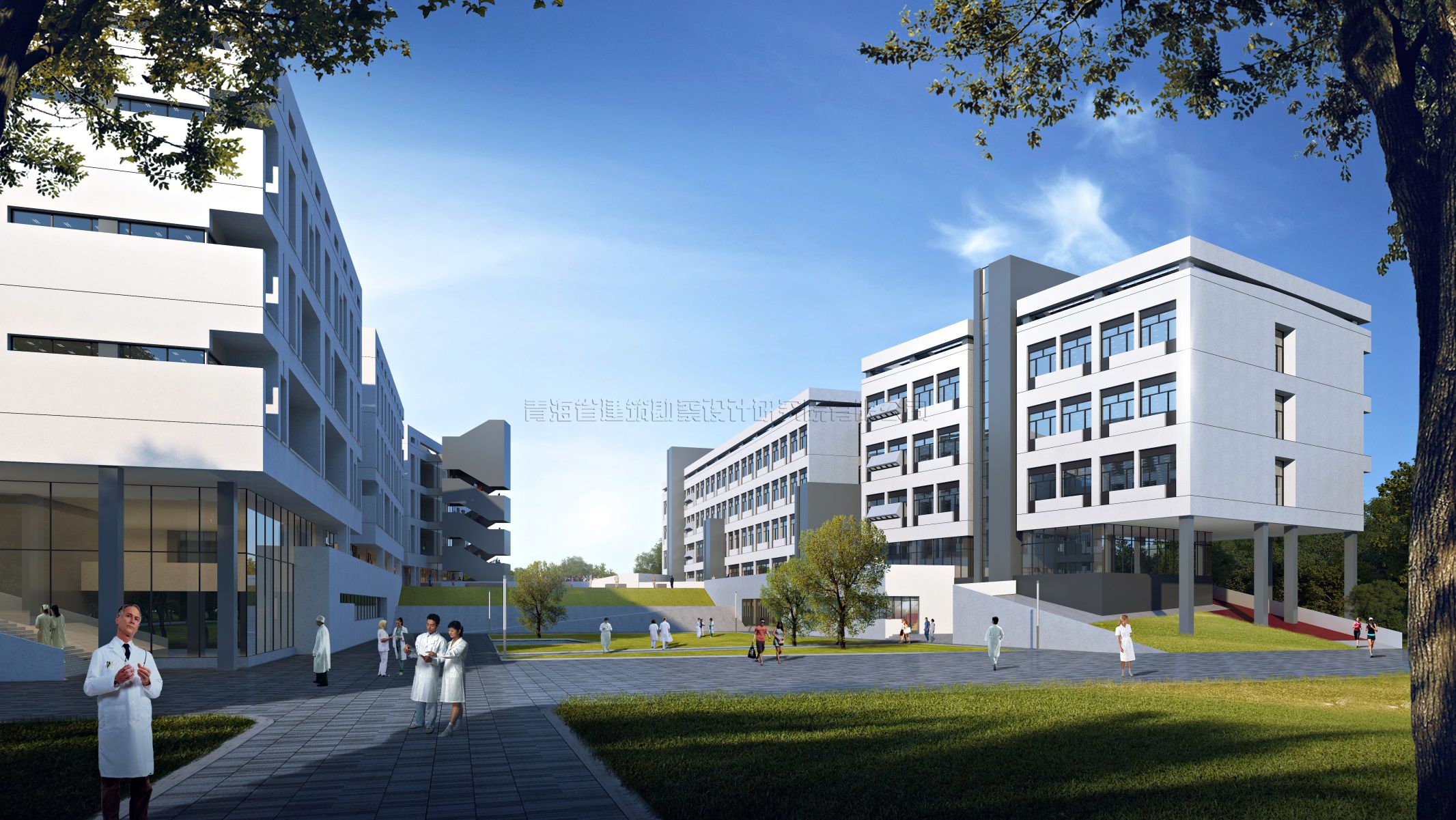 青海大學醫(yī)學院公共衛(wèi)生健康研究與臨床技能實訓基地建設項目,地點位于西寧市城北區(qū)青海大學校園內(nèi)西南部。南向毗鄰城市干道泓學大街:總建筑面積29978.01平方米,其中地上29012.85平方米,地下965.16平方米。建筑物呈不規(guī)則狀,層數(shù)地上5層,地下1層;建筑高度23.95米,建筑首層為門廳、展廳、會議。公共活動空間、學術(shù)展廊、多媒體報告廳、多功能廳、中醫(yī)醫(yī)史館等公共交流空間;二層至五層分為兩大功能分區(qū),其中北樓為實驗室及其輔助支持空間,南樓為辦公室,教研室、實訓室、智慧教室等辦公教學空間。