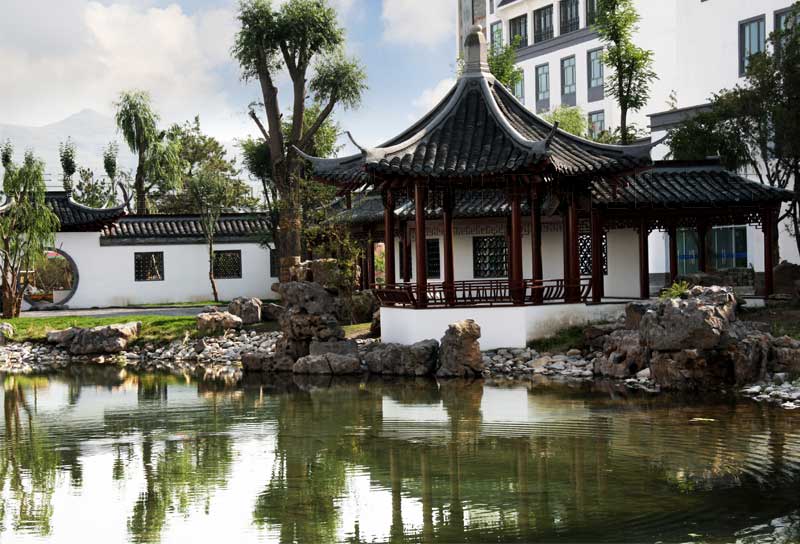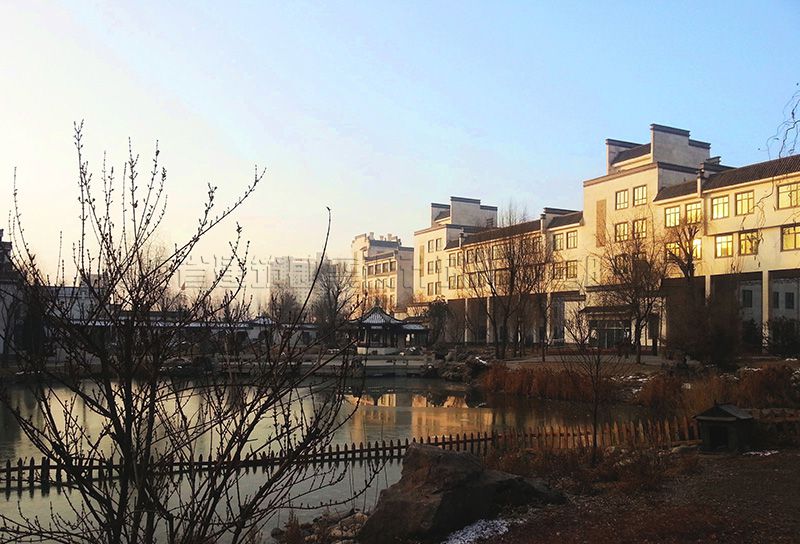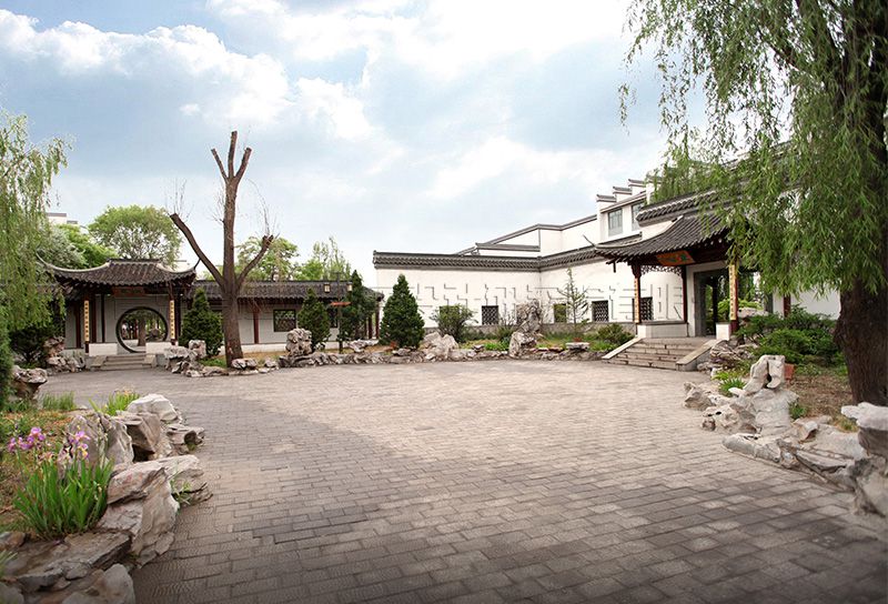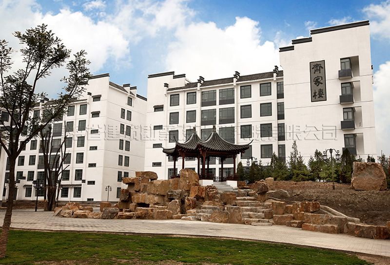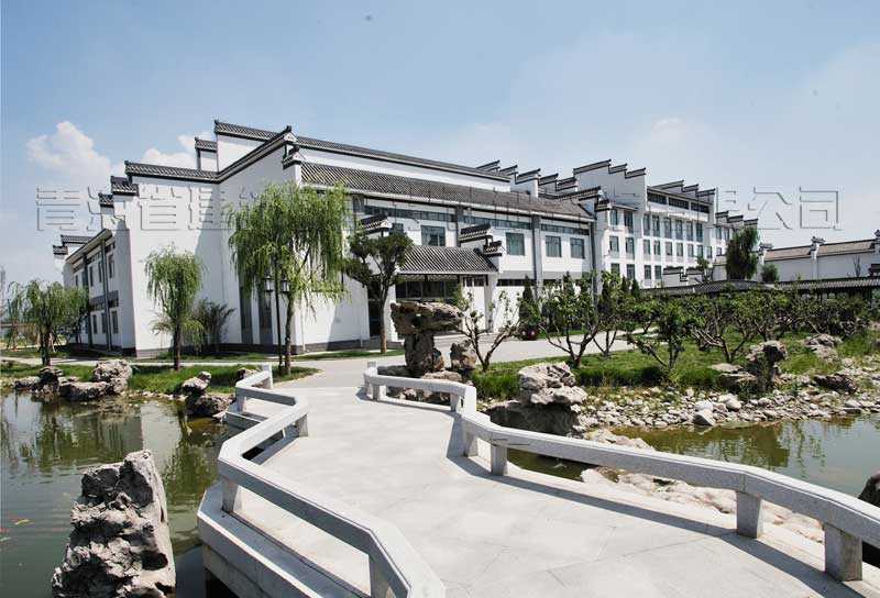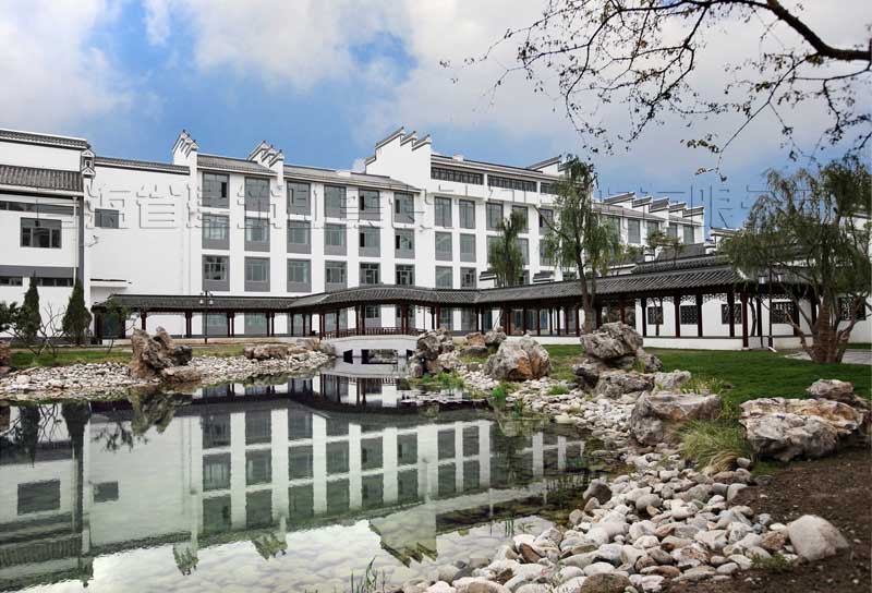 校區(qū)主入口設(shè)在南端,人流出入口寬24米,車流設(shè)9米寬獨(dú)立出入口,遠(yuǎn)離城市主干道,通過校區(qū)主要入口進(jìn)入校前廣場(chǎng),辦公區(qū)布置在廣場(chǎng)東側(cè)靠規(guī)劃路,教學(xué)區(qū)布置在廣場(chǎng)西側(cè)最安靜區(qū)域,餐廳及宿舍布置在西北角,400米運(yùn)動(dòng)場(chǎng)布置在用地東北角,臨城市主干道。規(guī)劃采用集中緊湊的功能布局結(jié)構(gòu),將教學(xué)、生活及運(yùn)動(dòng)區(qū)用簡(jiǎn)潔三角形空間連接,最大限度縮短師生步行距離,并通過大小不同的主題廣場(chǎng)、綠化、湖面將三部分有機(jī)連為一體。在學(xué)校的創(chuàng)作中,建筑師結(jié)合學(xué)校辦學(xué)思想和理念,確認(rèn)以“簡(jiǎn)徽”建筑風(fēng)格及“蘇州”園林景觀的設(shè)計(jì)思路,通過對(duì)設(shè)計(jì)思路反復(fù)論證、研討、修訂,歷時(shí)一年完成新校建筑設(shè)計(jì)方案及施工圖設(shè)計(jì)。